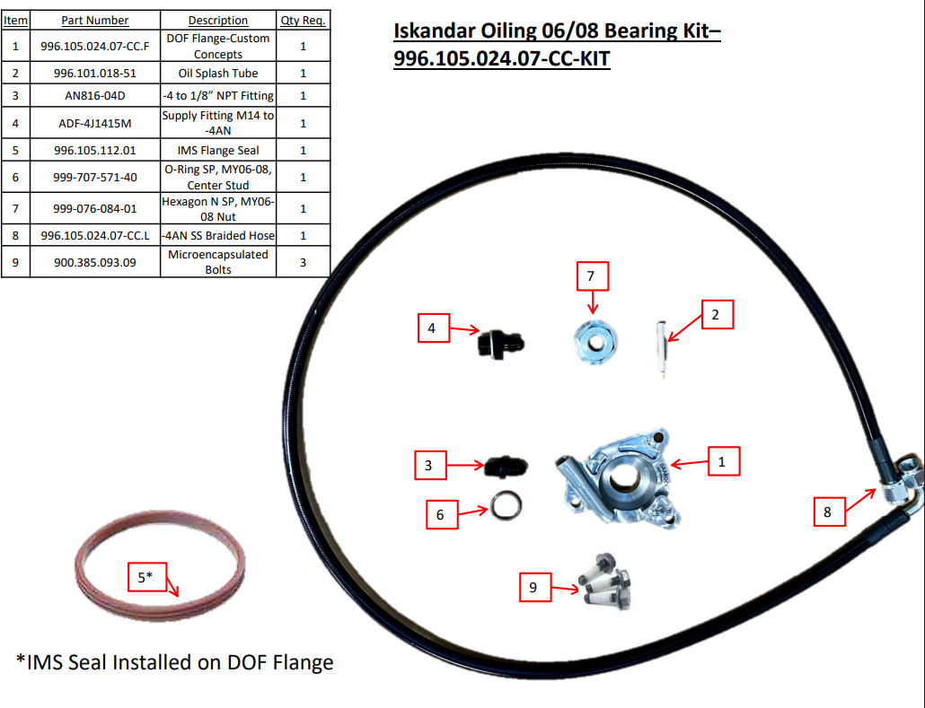 De Iskander Performance M97 06-08 Direct Oiling Kit voor de IMS (Intermediate Shaft) levert gedoseerd olie aan het originele IMS-lager van de fabriek. Voor de installatie moet de vetkeerring van het originele tussenaslager worden verwijderd.