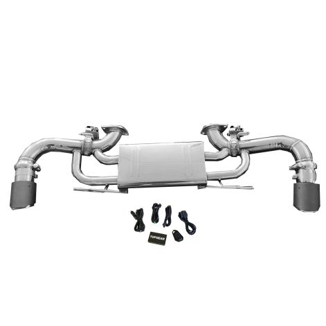 • The system comes as pictured and includes a sports rear silencer, valves, valve controller, and 2 high-quality carbon-fiber tailpipes.