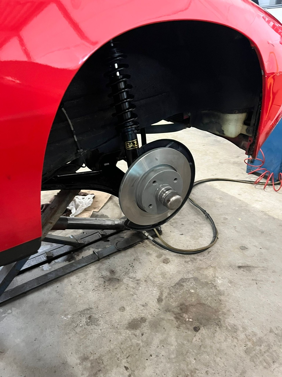De voorwielophanging is nu gereed en zit onder de auto (zie foto’s) De onderdelen voor de achterzijde zijn binnen en er volgt een update zodra deze op de auto zit.