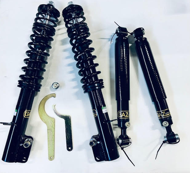 Verstelbare GAZ-schokdempers zijn een populaire upgrade voor de Porsche 924, 944 en 968 omdat ze de wegligging en het rijgedrag aanzienlijk verbeteren tegen een zeer scherpe prijs. Deze dempers bieden instelbare demping, waardoor bestuurders de hardheid kunnen afstemmen op hun rijstijl of gebruik — van comfortabel straatgebruik tot strak circuitrijden. Voor 924-rijders die sportiever willen rijden, bieden verstelbare GAZ-schokdempers een betaalbare en effectieve manier om het chassis te optimaliseren. Om het maximale eruit te halen voor de straat hebben we dit gecombineerd met verstelbare topmounts van GAZ en ook de achterste zwaarden in een verstelbare versie erop gezet. Hiermee kan een professioneel uitlijn specialist.